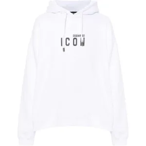 Dsquared2 Witte Hoodie Met Groot Zwart Logo