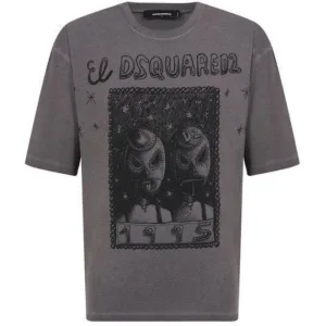 Dsquared2 El Dsquared2 Graphic Loose Fit T-shirt Houtskoolgrijs