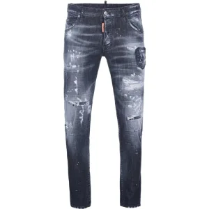 Dsquared2 Sailor Jean Paint Splatter Donkerblauwe Denim Broek