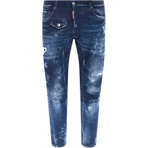 Dsquared2 Tidy Biker Jean Paint Splatter Donkerblauwe Denim Broek