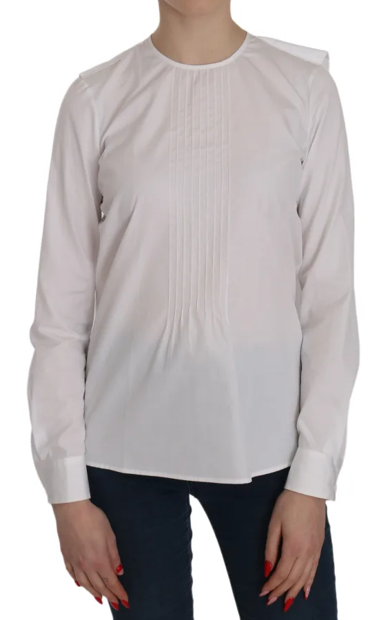 Dsquared2 Dames Witte Crew Neck Lange Mouw Katoenen Blouse