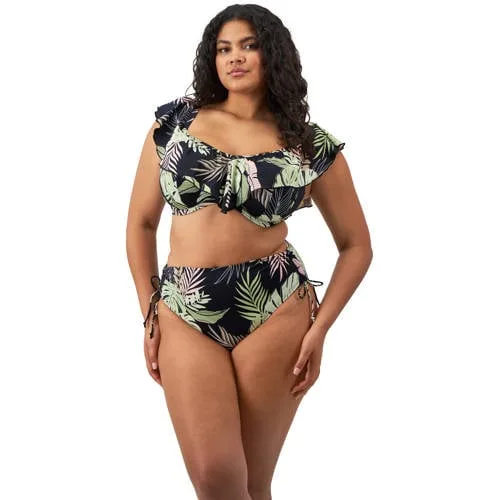Elomi high waist bikinibroekje Tropical Retreat zwart/lichtgroen/roze
