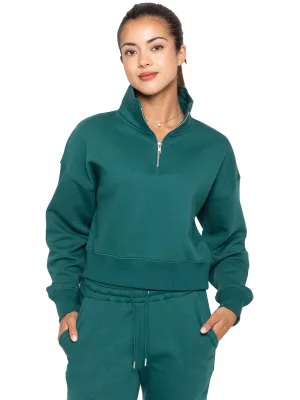 Enzo | Damessweatshirt met halve rits – bosgroen