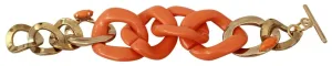 Ermanno Scervino Gouden Oranje Ketting Brede Messing Plastieken Armband