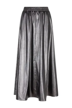 Esqualo imitatieleren plissé rok zilver