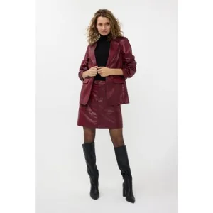 EsQualo Skirt Zipper Metallic Crinkle Wine Red