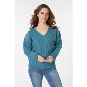 EsQualo Sweater Cables V-neck Galaxy Blue
