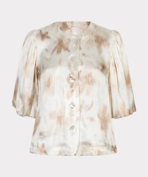 EsQualo Blouse Lantern Crepe Puff Shldr Camel