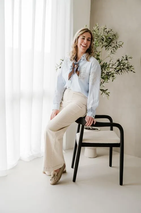 EsQualo Blouse Lace Jacquard Galaxy Blue