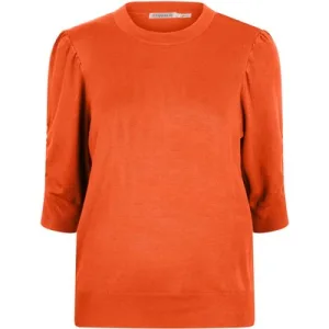 EsQualo Sweater Short Puff Slv Basic Knit Orange