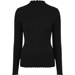 EsQualo Sweater Mock Neck Metallic Yarn Black