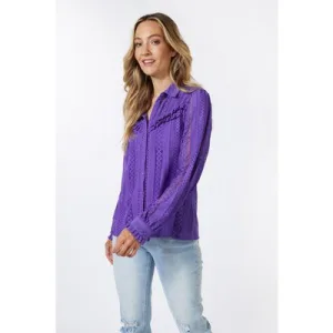 EsQualo Blouse Lace Puff Slve Deep Lavender
