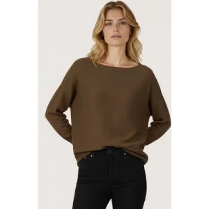 EsQualo Sweater Gathering Shoulder Copper Brown
