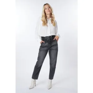 EsQualo Blouse R-neck Structure Black