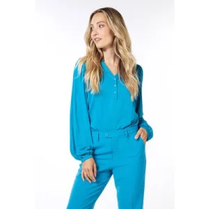 EsQualo Top Modal V-neck Button Petrol