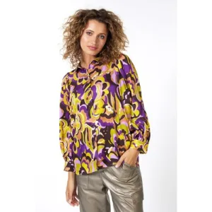 EsQualo Blouse Puff Slv Fancy Earth Print