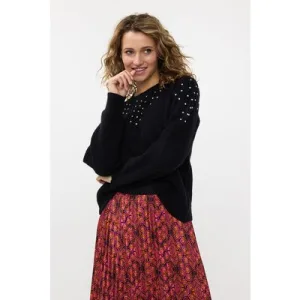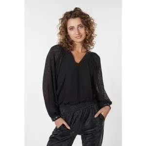 EsQualo Blouse Marble Beading Black