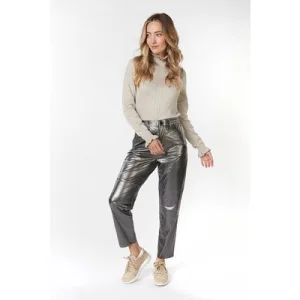 EsQualo Trousers Metallic Pu Silver