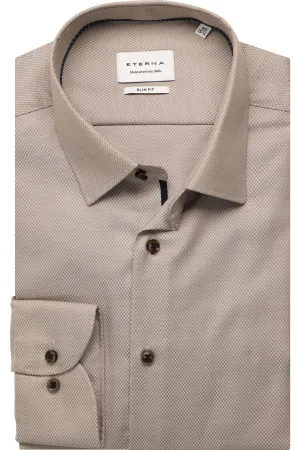 ETERNA Overhemd beige-bruin, Gestructureerd
