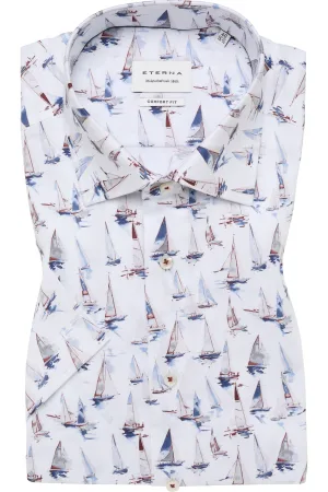 ETERNA Performance Overhemd Korte mouw blauw/wit
