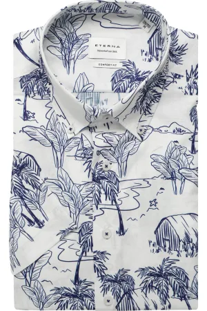 ETERNA 1863 Linnen Overhemd blauw, Bedrukt