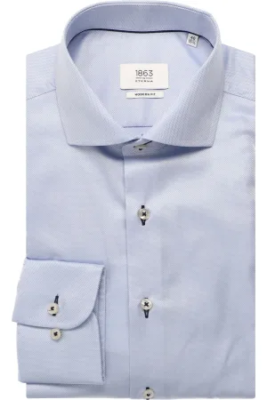 ETERNA 1863 Overhemd middenblauw, Gestructureerd