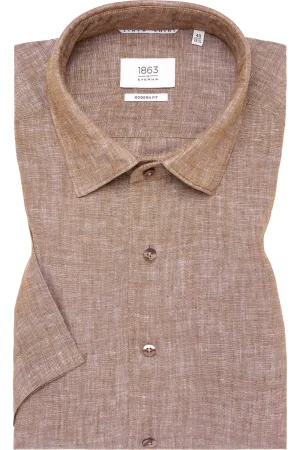 ETERNA 1863 Linnen Overhemd caramel, Effen