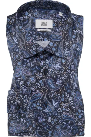 ETERNA Overhemd donkerblauw, Bedrukt