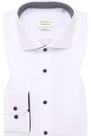 ETERNA slim fit overhemd – niet doorschijnend twill heren overhemd – wit – Strijkvrij – Boord