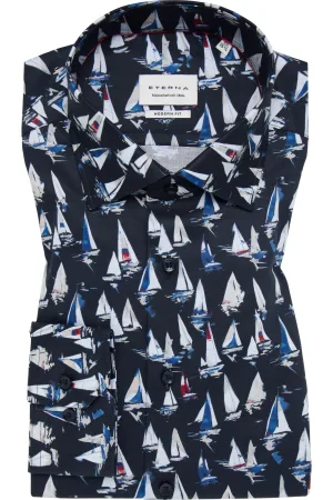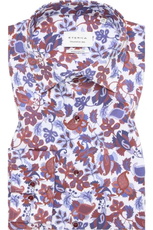 ETERNA Overhemd chianti/blauw, Bedrukt