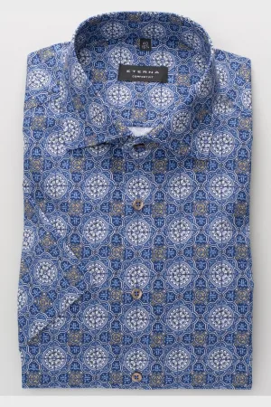 ETERNA 1863 Modern Fit Overhemd middenblauw, Bedrukt