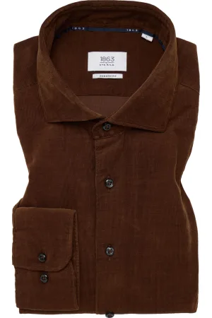 ETERNA 1863 Overhemd beige-bruin, Effen