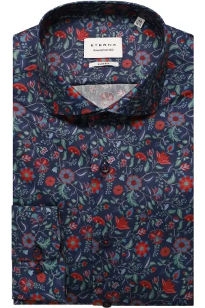 ETERNA Modern Fit Overhemd marine, Bedrukt