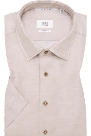 ETERNA 1863 Linnen Overhemd beige/bruin, Effen