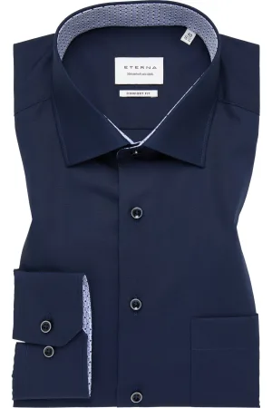 ETERNA 1863 Overhemd donkerblauw, Effen