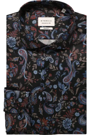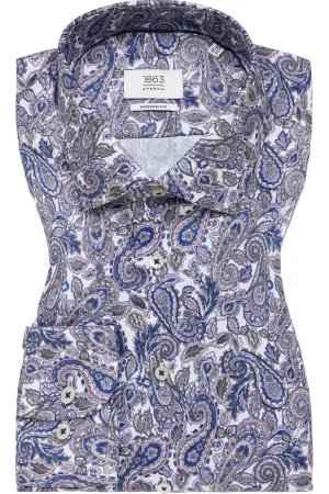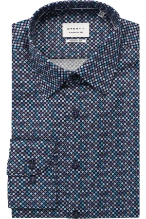 ETERNA 1863 Linnen Overhemd marine, Bedrukt