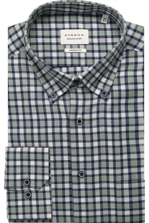 ETERNA Linnen Overhemd olijfgroen, Effen