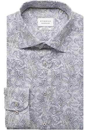 ETERNA Overhemd donkerbruin, Bedrukt