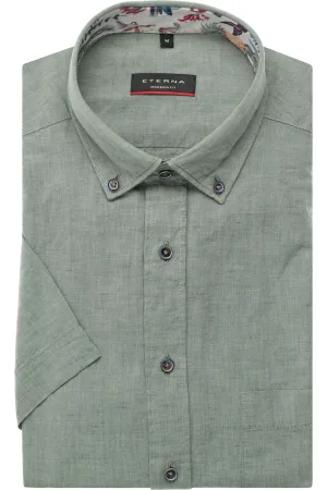 ETERNA 1863 Linnen Overhemd lichtgroen, Gestreept