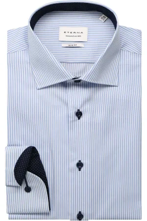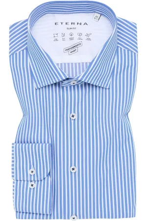 ETERNA Performance Overhemd blauw, Gestreept