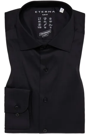 ETERNA Performance Slim Fit Overhemd zwart, Effen