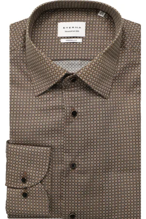 ETERNA Performance Overhemd beige/bruin, Bedrukt