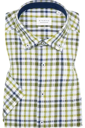 ETERNA 1863 Linnen Overhemd groen, Effen