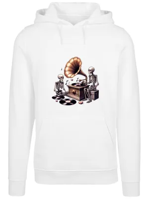 F4NT4STIC Sweatshirt ‘Gothic Skeleton Vintage Vinyl Plattenspieler’ bruin / taupe / zwart / wit
