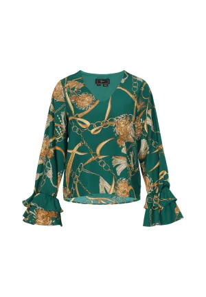 faina Blouse cappuccino / smaragd / poederroze
