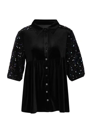 Faina Fluwelen overhemd met glitters Dames rood