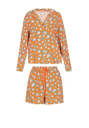 faina Korte pyjama ‘Home’ beige / jade groen / oranje