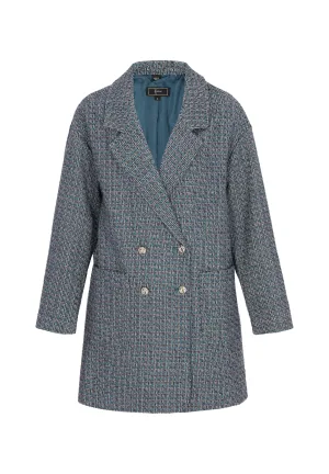 faina Tussenmantel ‘Festive’ taupe / petrol / zwart