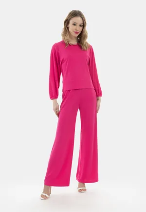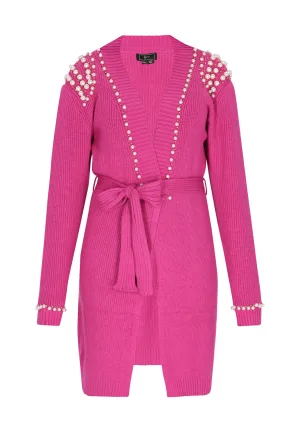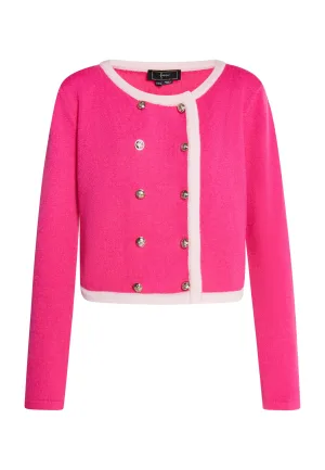 faina Gebreid vest goud / fuchsia / parelwit