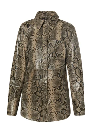 Faina Leren overhemd Dames beige slang